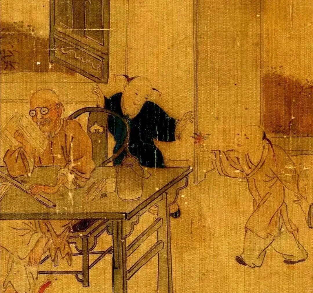 要说仇英的《村童闹学图》,那几乎即是古代学堂里的“苟且动物城”!这幅画里,真诚伏案熟睡,学童们可就撒欢儿了,一个个跟小山公似的,急上眉梢,吵杂得不成。