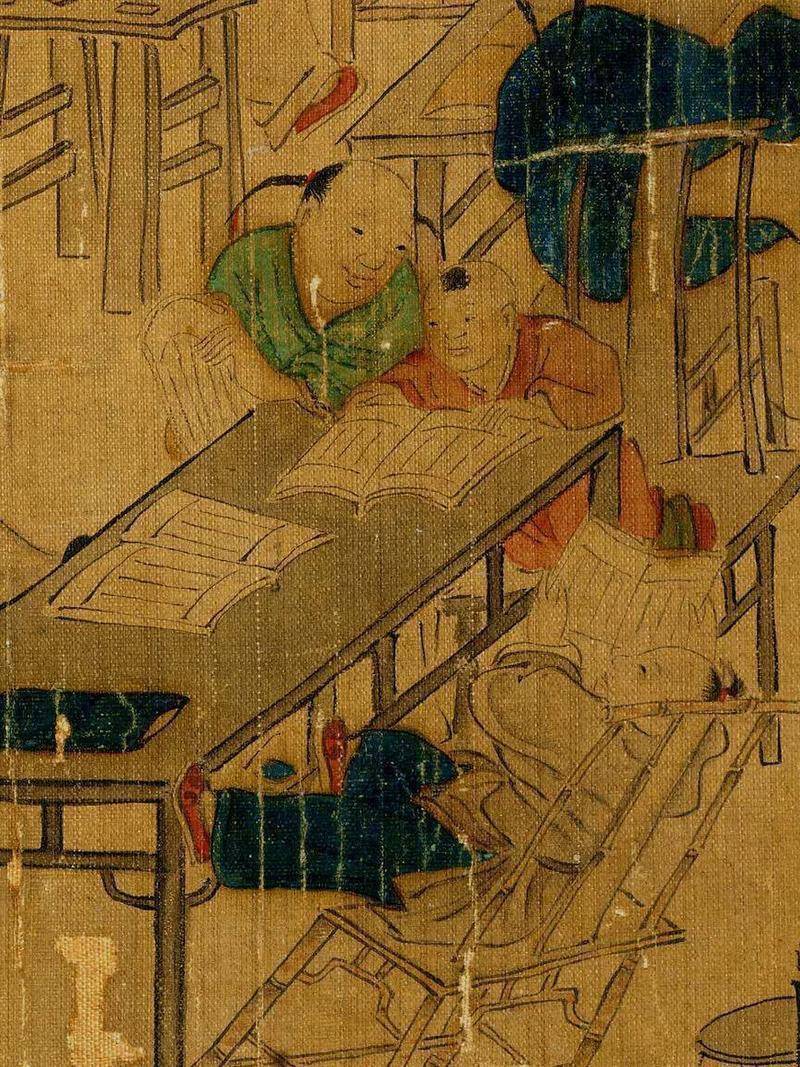 仇英用他那精细的笔法,把学童们的粗劣和开朗勾勒得密致生动,让东说念主一看就忍不住想笑。这幅画不仅展现了古代学堂的生涯场景,更让咱们看到了孩子们那灵活无邪、袒裼裸裎的一面。它就像一面镜子,照出了咱们每个东说念主心中那份久违的童真和欢畅。