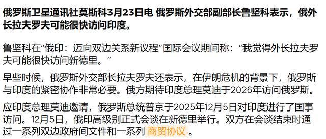 除此以外,俄方还披露一则音信,俄外长可能于近期出访印度,拉夫罗夫深切期待莫迪总理本年访俄,还暗意俄印在动力合作领域康庄大道。