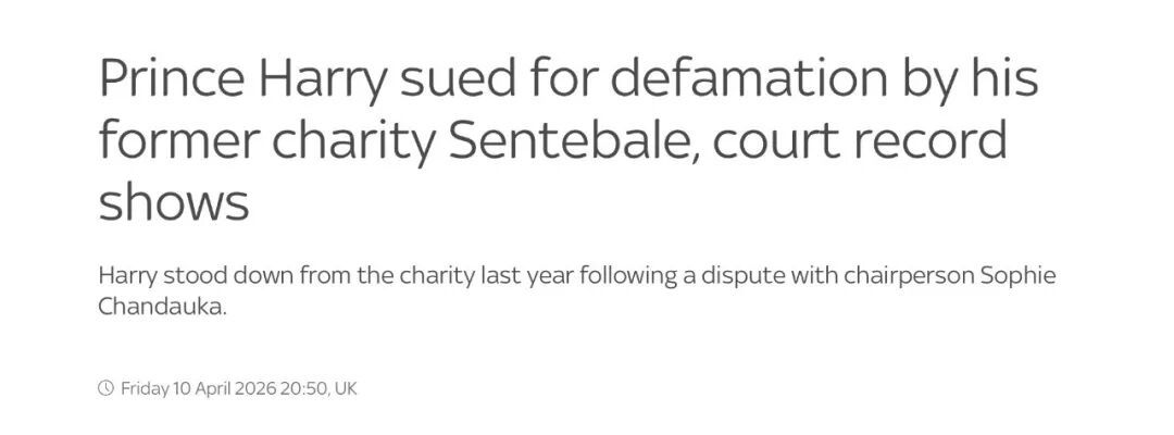 英媒4月10日征引法庭文献称,非洲慈善机构Sentebale已于3月24日在伦敦高档法院刻薄贬低诉讼,指控该机构的调和首创东说念主哈里王子以及机构的另又名前受托东说念主马克·戴尔(Mark Dyer)策动了一场针对Sentebale的媒体负面报说念,导致其运营交加并带来“声誉损伤”。