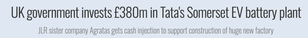 ● 英国政府晓示出资3.8亿英镑复旧塔塔在英建电板工场,为捷豹路虎供应电板