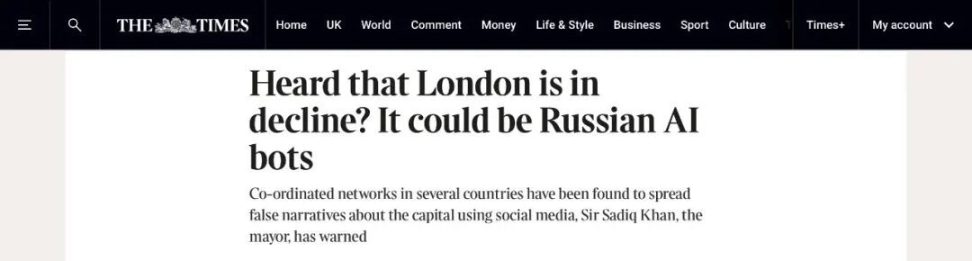 ● 伦敦市长:俄罗斯AI与极右翼团体调和对伦敦进行造作负面宣传